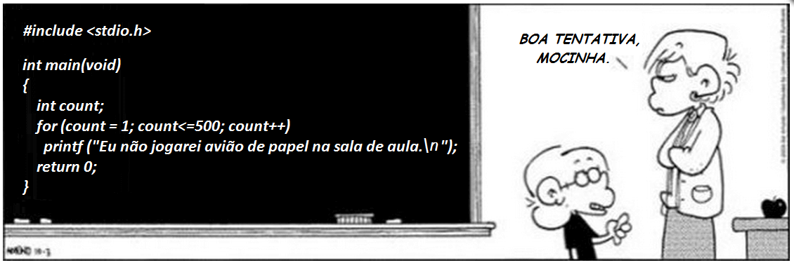 printf(Eu não jogarei avião de papel na sala de aula.\n);