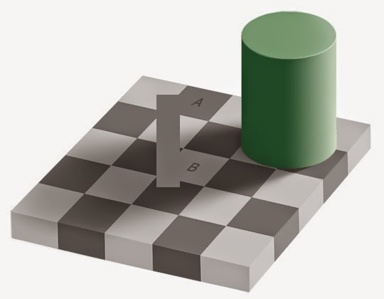 Você pode não acreditar, mas os quadrados A e B têm a mesma cor. Não acredita? Olha aí.