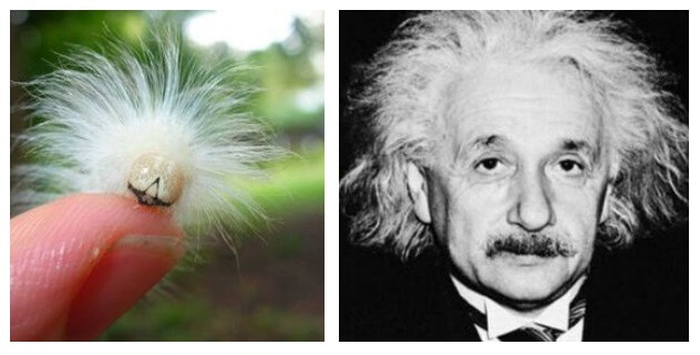 … e até de lagarta, por causa do seu penteado bem peculiar.