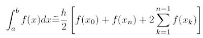 Usando a fórmula do método dos trapézios teríamos o seguinte resultado: